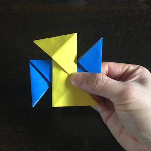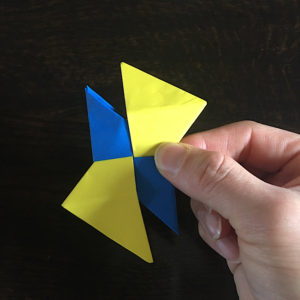 最後に互いの角を差し込む工程がありましたが、2回目、4回目が切れ目が狭くなって折りづらいので、身近な爪などを使って切れ目を広げてあげると差し込みやすいと思います。