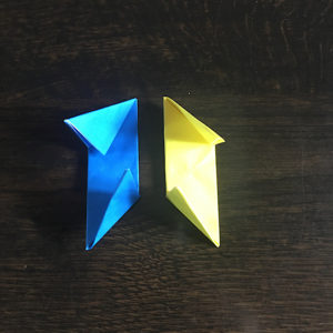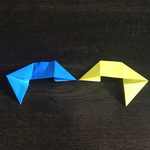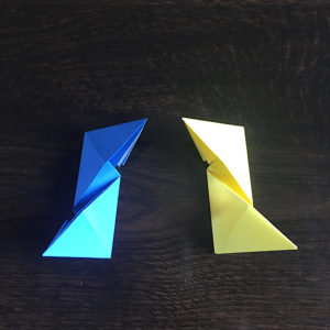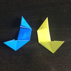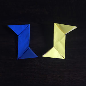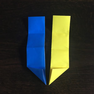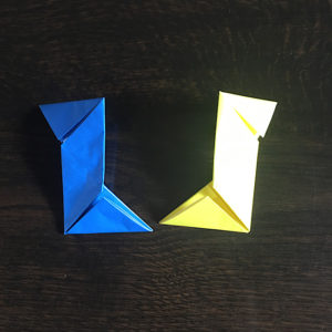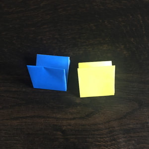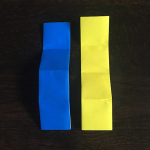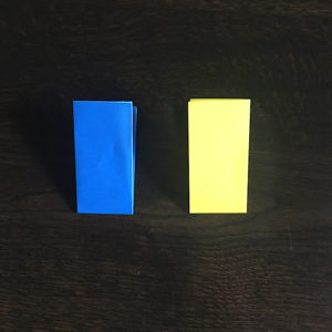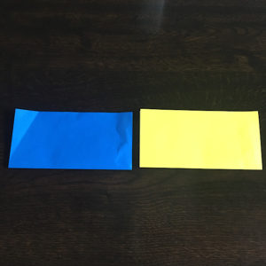 好きな色の折り紙2枚(今回は青と黄色の折り紙で折ります。)