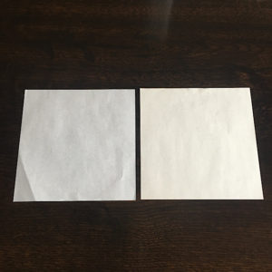 今回は2枚同時に折っていきます。折り紙の白地を出して下さい。