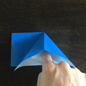 角を下にして真ん中の横線に沿って角を折り上げます。