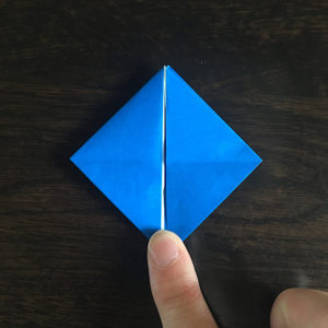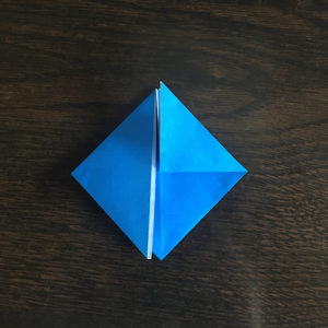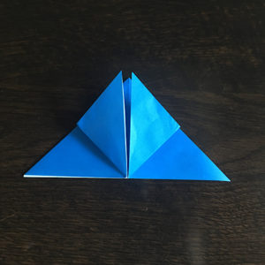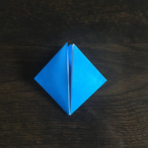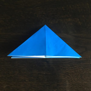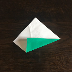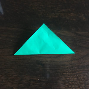 折り紙を縦にしてもう一度三角に折ります。