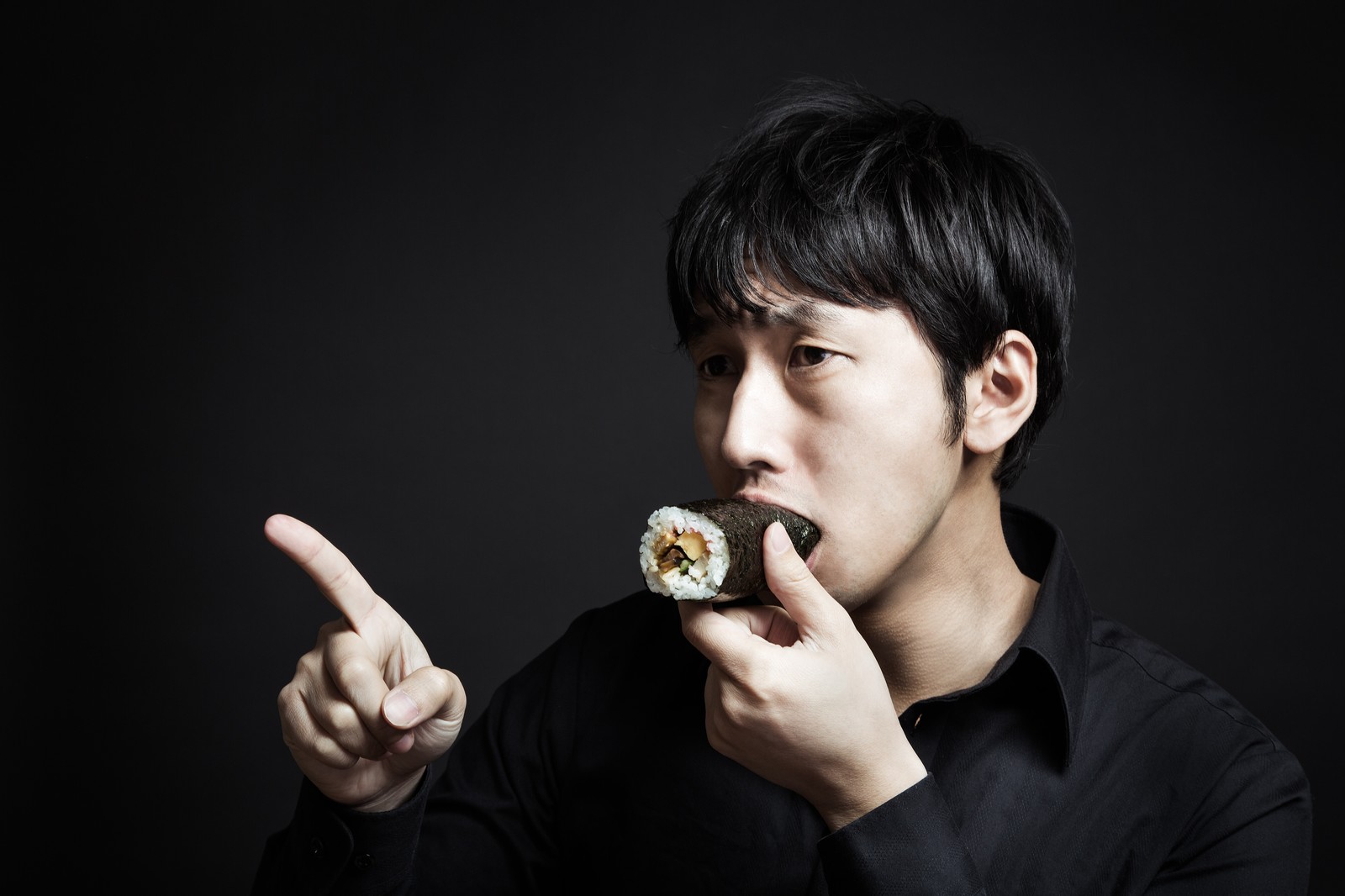 巻きすの中で海苔とご飯と具材が、くるっと丸まるイメージで