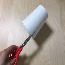 まず1つの紙コップに対角線上に4か所切り込みを入れます。