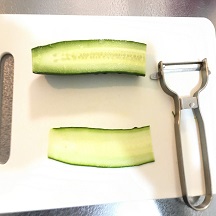 写真は切った短いキュウリを使っていますが、一本そのままの方がきれいに作れます。