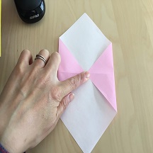 写真のように、角が外側に飛び出るように折り返します。